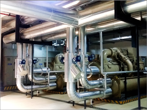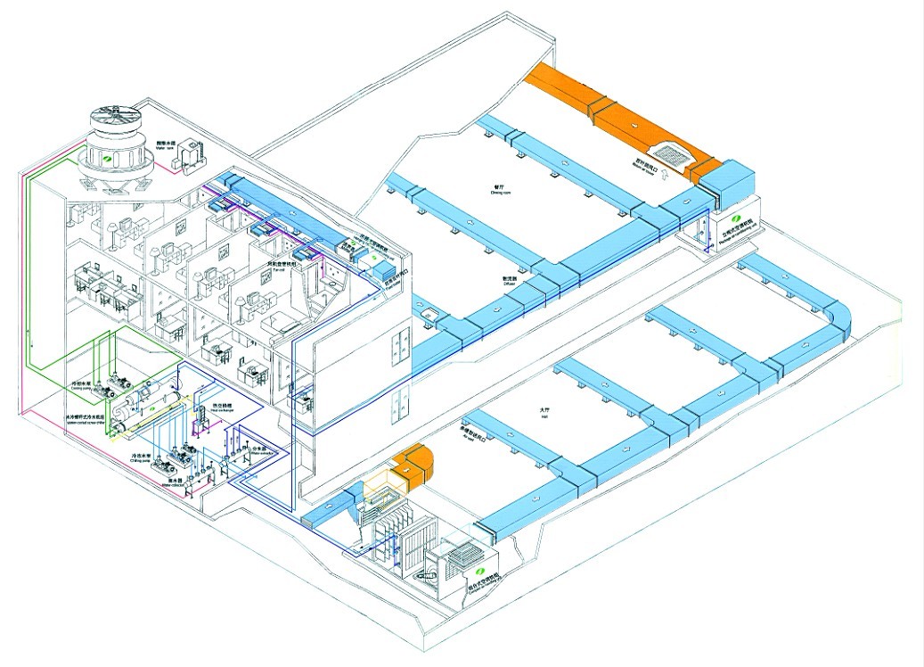 醫(yī)院一般為大面積營業(yè)區(qū)域,空調(diào)使用時(shí)冷量需求將會(huì)很大,針對(duì)此特點(diǎn),設(shè)計(jì)出整套綜合系統(tǒng)解決方案,即夏季采用螺桿式或離心式水冷冷水機(jī)組提供冷源,熱回收提供生活熱水,冬季由燃?xì)狻⑸镔|(zhì)鍋爐提供熱源和生活熱水,滿足空調(diào)每個(gè)季節(jié)要求。針對(duì)醫(yī)院內(nèi)有需要常年提供空調(diào)的采用潔凈技術(shù)的房間,因?yàn)槠涿荛]性好,外圍護(hù)結(jié)構(gòu)對(duì)室內(nèi)影響較小,加之人員、照明及設(shè)備的散熱與其他普通空調(diào)房間的空調(diào)需求不同,且過渡季節(jié)均需供冷,這就對(duì)其冷熱源的選擇提出了要求,另配置風(fēng)冷模塊冷(熱)水機(jī)組,滿足過渡季節(jié)和夜間機(jī)房不運(yùn)行時(shí)空調(diào)熱水要求。此系統(tǒng)在確保醫(yī)院普通病房及門診辦公常規(guī)中央空調(diào)系統(tǒng)需求和醫(yī)院內(nèi)熱水供應(yīng),同時(shí)兼顧需求醫(yī)院凈化要求,經(jīng)濟(jì)適用又高效。