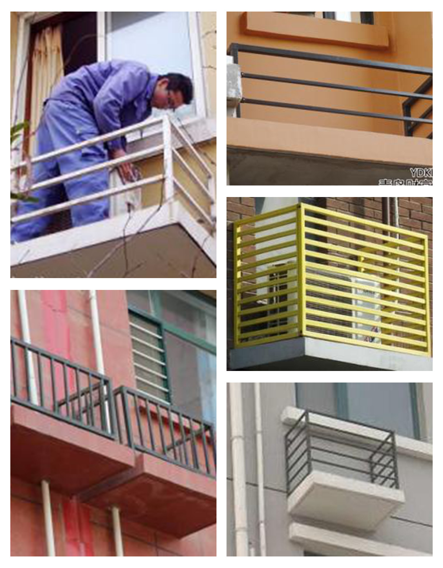 高層建筑的空調外機位置如果設計合理,安裝師傅在室內就可以完成室外機的安放問題,并且后期也好維護,這樣就大大降低了安全事故的發生!其實如果當初在建筑設計時甲方、設計師多為之后的空調安裝維護考慮,設計出既合理又不影響建筑美觀的空調外機位置,空調從業人員在高空作業時的危險就會降低很多;同時設計散熱良好的空調工作環境,如不采用百葉圍擋采用如上圖所示鐵藝圍欄,也能大大降低空調能耗,一舉多得的好事,所以我們為空調安裝維修人員吶喊發聲,為空調從業人員的家庭吶喊,還請各位關注空調安裝維修人員的生命!
