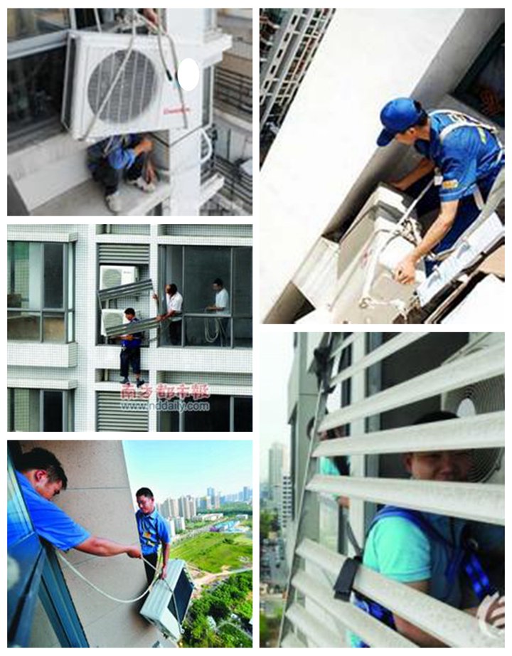 我們的高層建筑越來越漂亮,漂亮的造型、整潔的外墻,建筑顯得越來越大氣精美,但作為現代高層建筑必不可少的配置——空調,很多的建筑卻并沒有周到的考慮空調室外機的安裝位置,相當一部分建筑的空調室外機位置都是非常難于安裝且散熱不好!新聞不時爆出空調安裝維修人員墜樓的安全事故,造成了大量空調安裝、維修人員的傷亡,當然這中間有一部分是屬于不規范操作造成,但其中有很多也是由于空調安裝維修位置過于危險造成的。我們的社會越來越以人為本,生命比什么都重要,為什么我們那么多建筑的空調安裝位置都設計的非常難于安裝呢?我們的空調從業人員安裝維修這類空調冒著極大的風險,誰來關注我們空調安裝維修人員的生命?